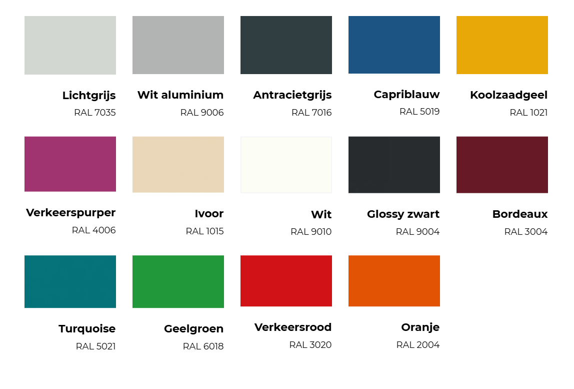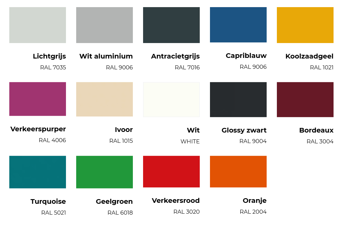 - Afgewerkt met een krasvaste poedercoating