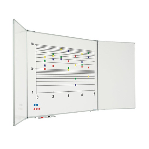 Meervlaks schoolbord schuifmechaniek, wit emaille