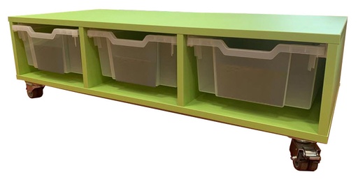 Kleuterbankje kring - op wielen - met transparante bakken - zitting in hout