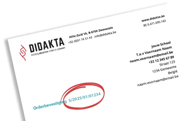 Dit is het orderbevestigingsnummer dat de school heeft ontvangen bij het bestellen van één of meerdere digitale borden. Bijvoorbeeld: “S/2025/01/01234”.